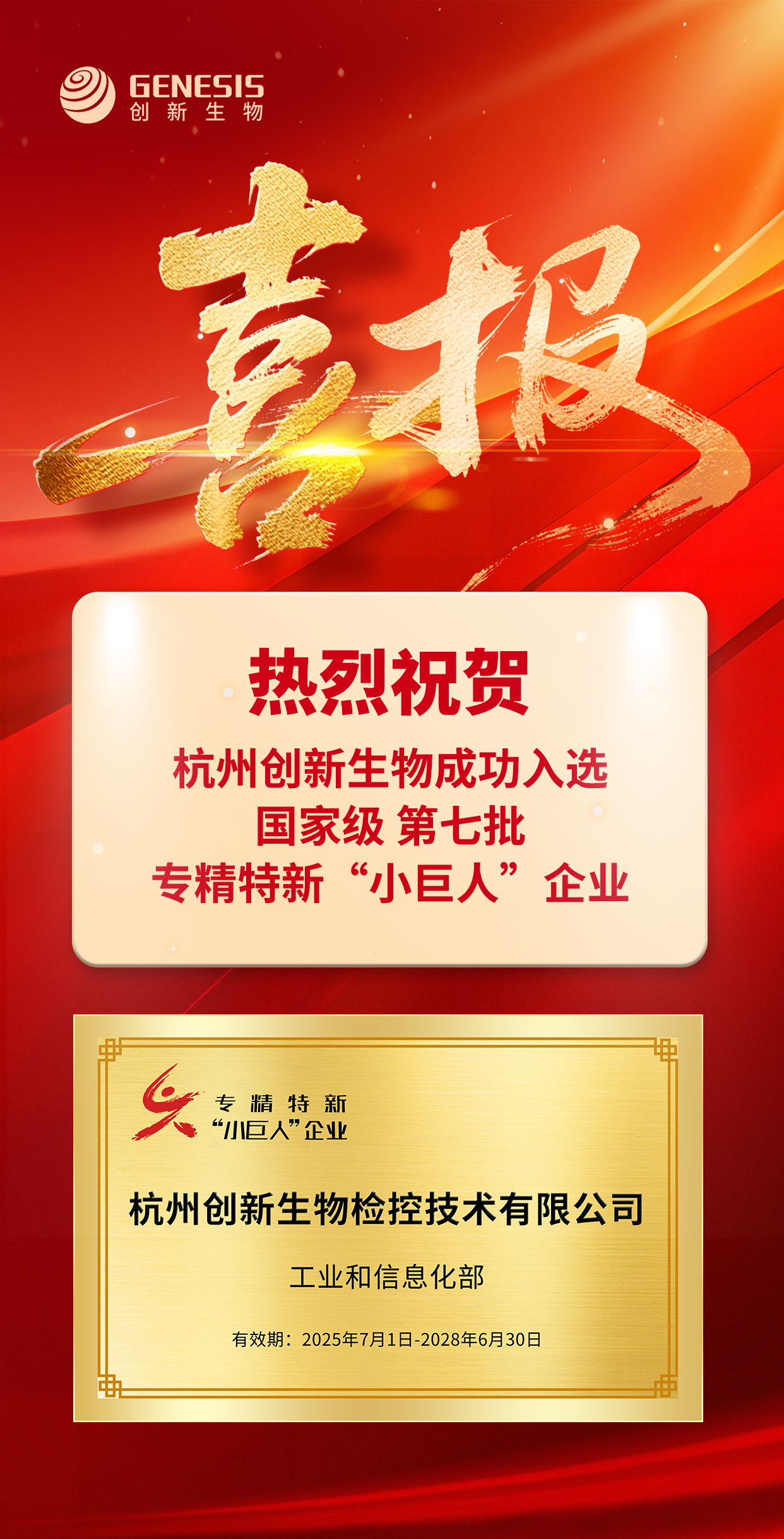 本次成功入圍專精特新“小巨人”企業(yè),是對杭州創(chuàng)新生物檢控技術有限公司在體外診斷行業(yè)市場競爭力和發(fā)展?jié)摿Φ某浞挚隙?。未來,公司將持續(xù)致力于推動臨床病原體快速診斷技術的發(fā)展,堅定不移走好“專精特新”發(fā)展之路。